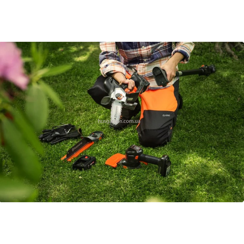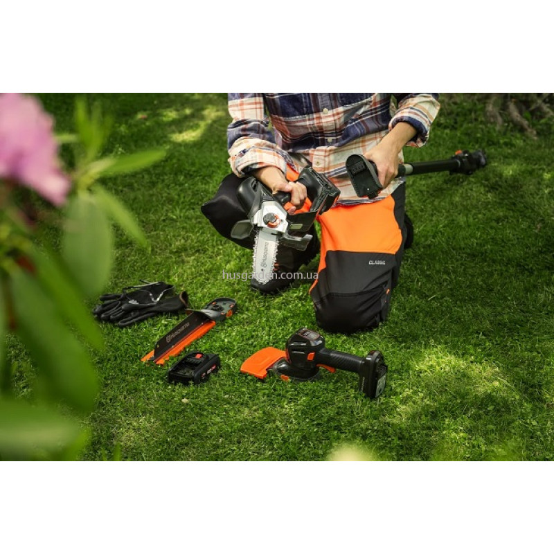 - Під час роботи з ним викиди вуглецю будуть значно меншими, ніж при роботі з аналогічним виробом, який оснащено двигуном внутрішнього згорання. Цей акумуляторний виріб не створює шкідливих викидів CO₂ під час роботи, без втрати потужності та якості, на яку ви очікуєте від продукції Husqvarna.