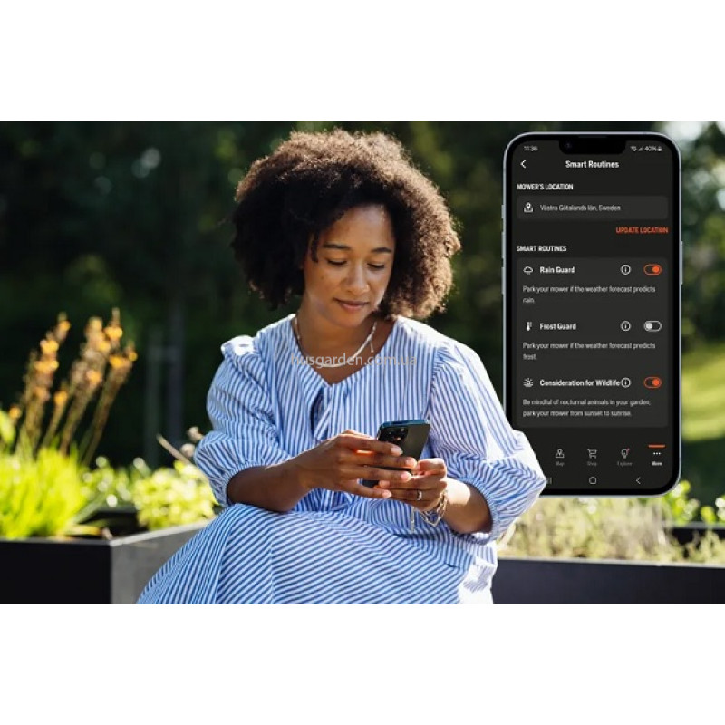 - Використовуйте Automower Smart Routines у додатку Automower Connect, щоб покращити догляд за газоном. Незалежно від того, чи хочете ви автоматично паркувати газонокосарку, коли прогноз погоди показує сильний дощ або заморозки, чи пам’ятати про нічних тварин, налаштувавши графік скошування лише вдень, за допомогою Smart Routines ви можете легко керувати процедурами через додаток.
