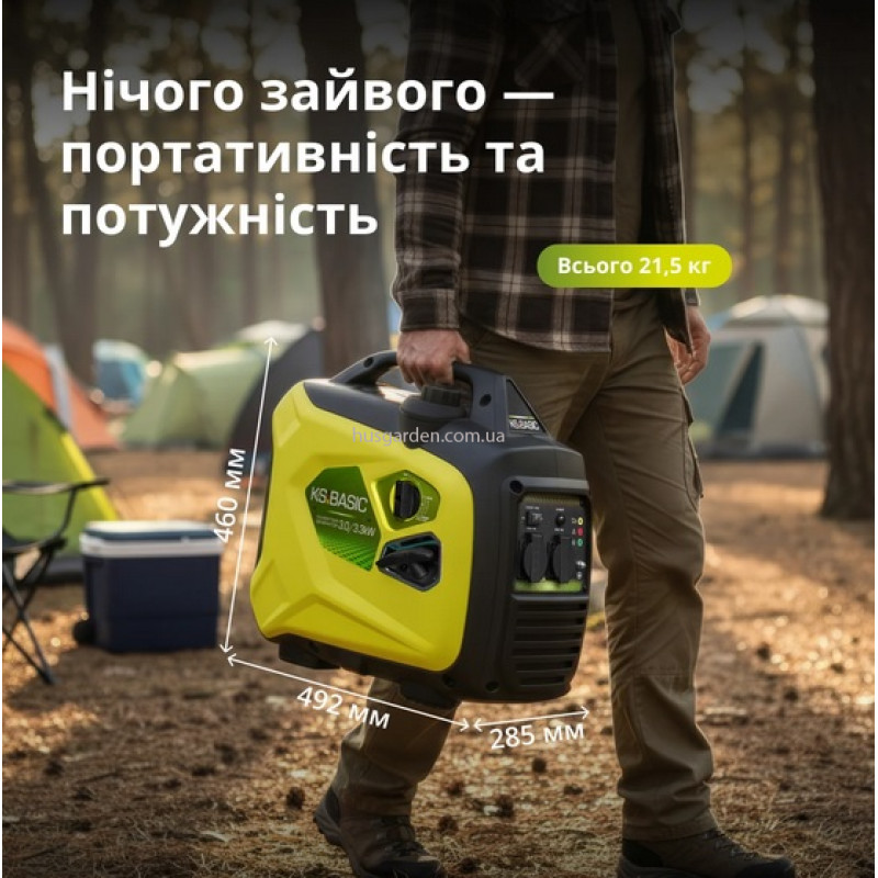 - Компактність і легкість - мала вага й розміри дозволяють легко транспортувати генератор — ідеально для кемпінгу, риболовлі, подорожей та дому.