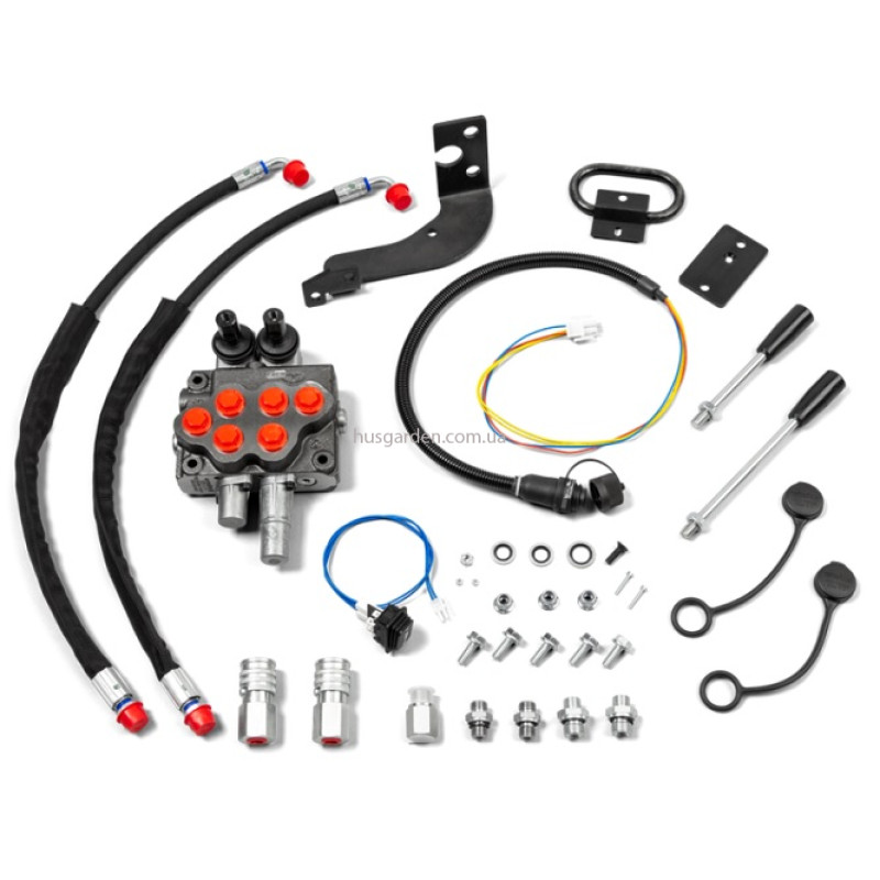 В комплект входят два дополнительных гидравлических соединения, клапан для регулировки потока, переключатель управления, а также шланги со специальными разъемами и электропроводкой для надежной и удобной эксплуатации.