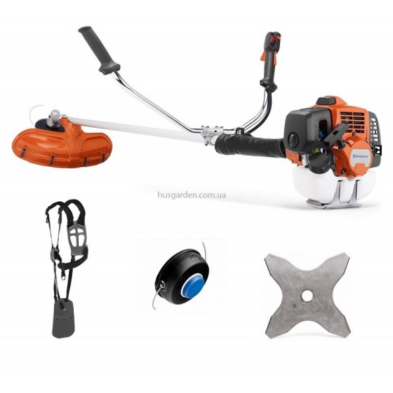 Модель оснащена комбинированной защитой для работы как с ножом, так и с головкой (установлен контрнож для обрезки корда большей длины, чтобы корпус защиты не разбивался). Для повышения комфорта в работе Husqvarna 541RS комплектуется ременной оснасткой Balance 55, у которой, помимо всего прочего, есть ещё и смягчающая подкладка пластины, на которую травокосилка подвешивается.
