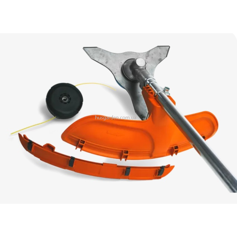 Комбинированный защитный кожух можно использовать с ножом для травы или триммерной головкой.