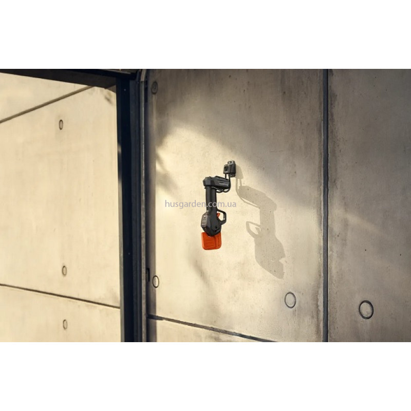 - Зручність зберігання завдяки спеціальному гачку й компактному дизайну. Інструменти модельного ряду Aspire легко стають ще більш компактними завдяки регульованим, складаним або знімним деталям, які полегшують зберігання в невеликих комірчинах і транспортування в автомобілях. Завдяки гачку, що входить до комплекту, можна зберігати їх безпосередньо на стіні або повісити на настінні рейки, які є частиною системи зберігання Husqvarna Aspire. Рейки продаються окремо.